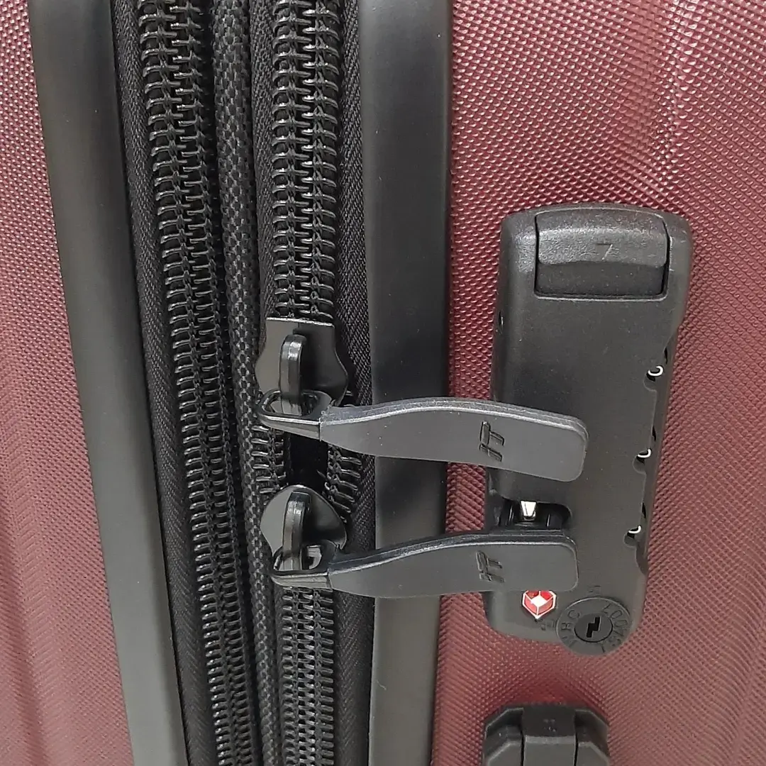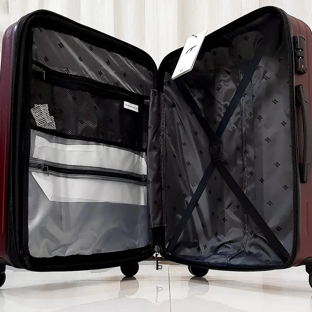 این محصول بسیار سبک وزن می باشد..فضای داخل چمدان شامل یک تقسیم بندی مرکزی زیپ دار و دو بند نگهدارنده لوازم ..یک جیب مشکی زیپ دارو دو جیب ویک کیسه پلاستیکی مخصوص لباس خیس…قفل امنیت تی اس ای بین المللی زیپ نمره 10 بهترین نوع زیپ ..دسته کشنده خالص استیل.. سایز های این چمدان استاندارد هواپیمایی